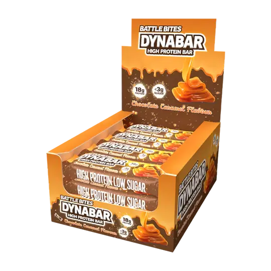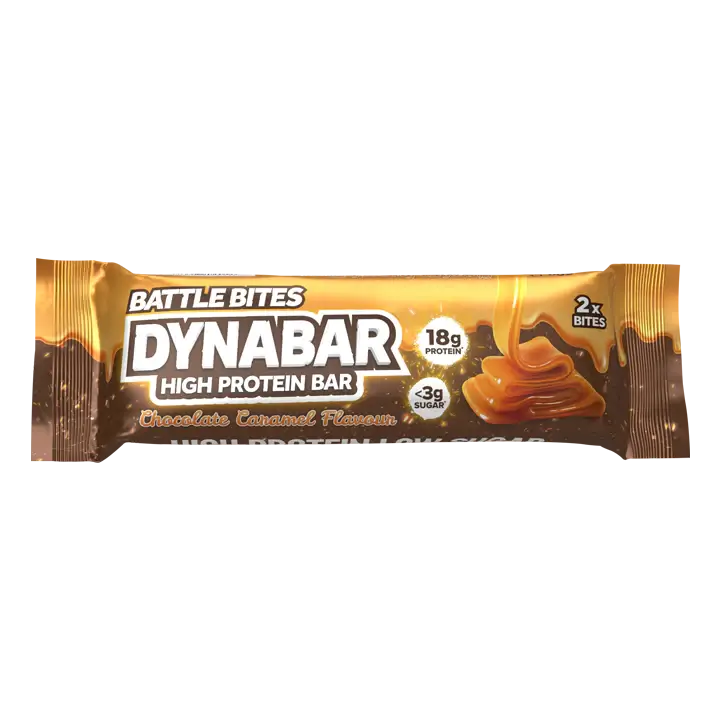 This new Battle Bites Dynabar is indulgent, oozing with a white chocolate filling and caramel topped with crispy pieces and a low sugar caramel layer.