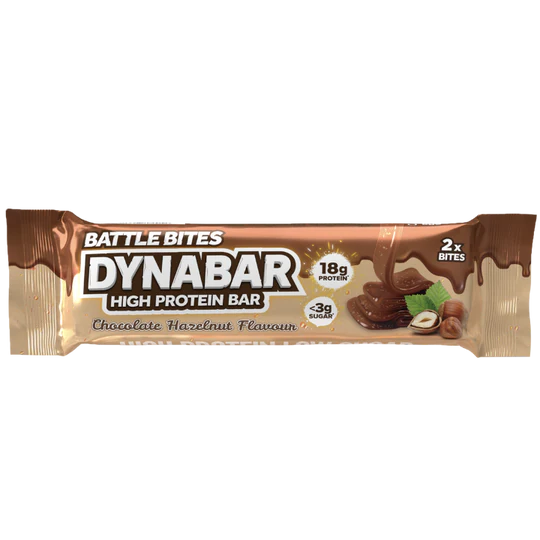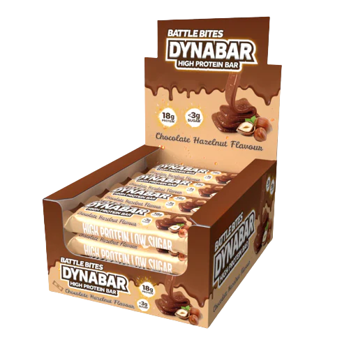 This new Battle Bites Dynabar is irresistible. Hazelnut protein dough oozing with a white caramel filling as well as a low sugar caramel layer covered in milk chocolate and topped with roasted hazelnuts.